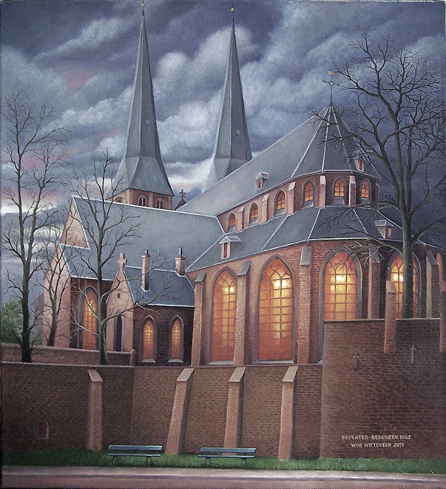 Deventer. De Bergkerk, omstreeks 1965. Olieverf op linnen, 70x80 cm. (In particulier bezit).